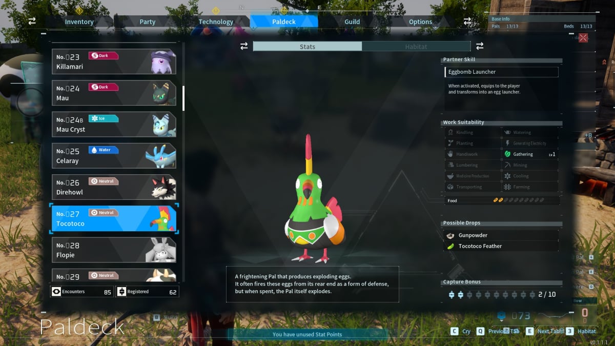 This might be a personal favorite, but I love Tocotoco. Not only is it a great source of Gunpowder, but its Partner Skill is one of the best. With Eggbomb Launcher, you can manually fire exploding eggs from Tocotoco, which is as destructive as it is hilarious.
