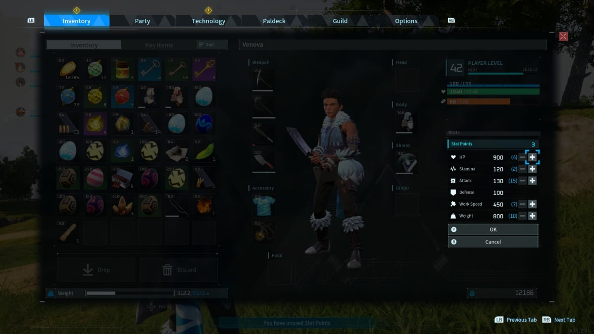 These stats provide noticeable differences when you improve them, whereas the changes from boosting Attack and Work Speed are negligible. Attack is better boosted through powerful weapons and Work Speed, depending on your goals, really doesn’t alter much of the core game, as you’ll soon have Pals to help you.