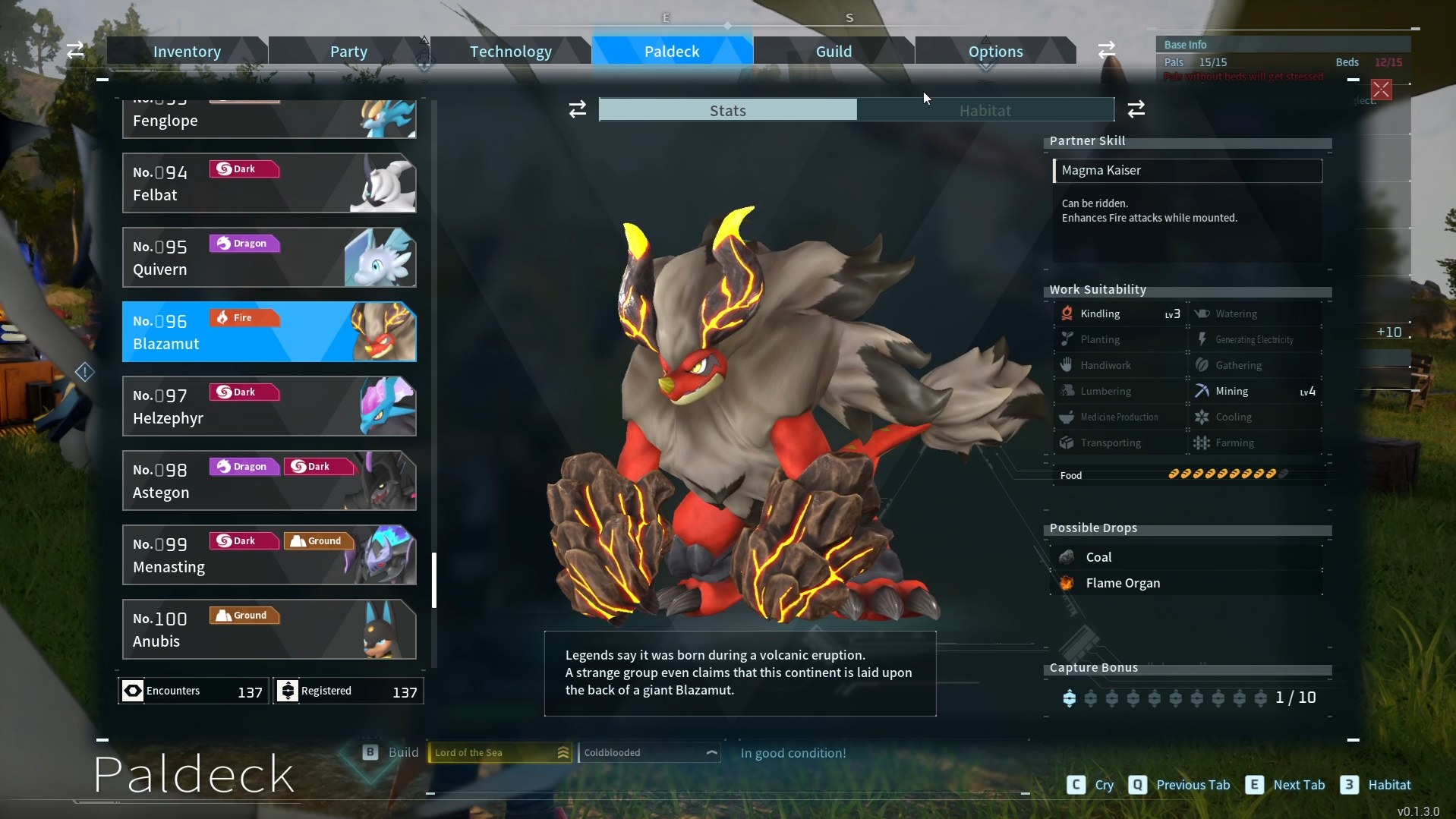 Blazamut is a little tougher. You can find it around the No. 3 Wildlife Sanctuary, and they’re usually level 40. Blazamuts also hit pretty hard, so definitely bring a Water Pal around the same level. You can also get Blazamut through breeding.