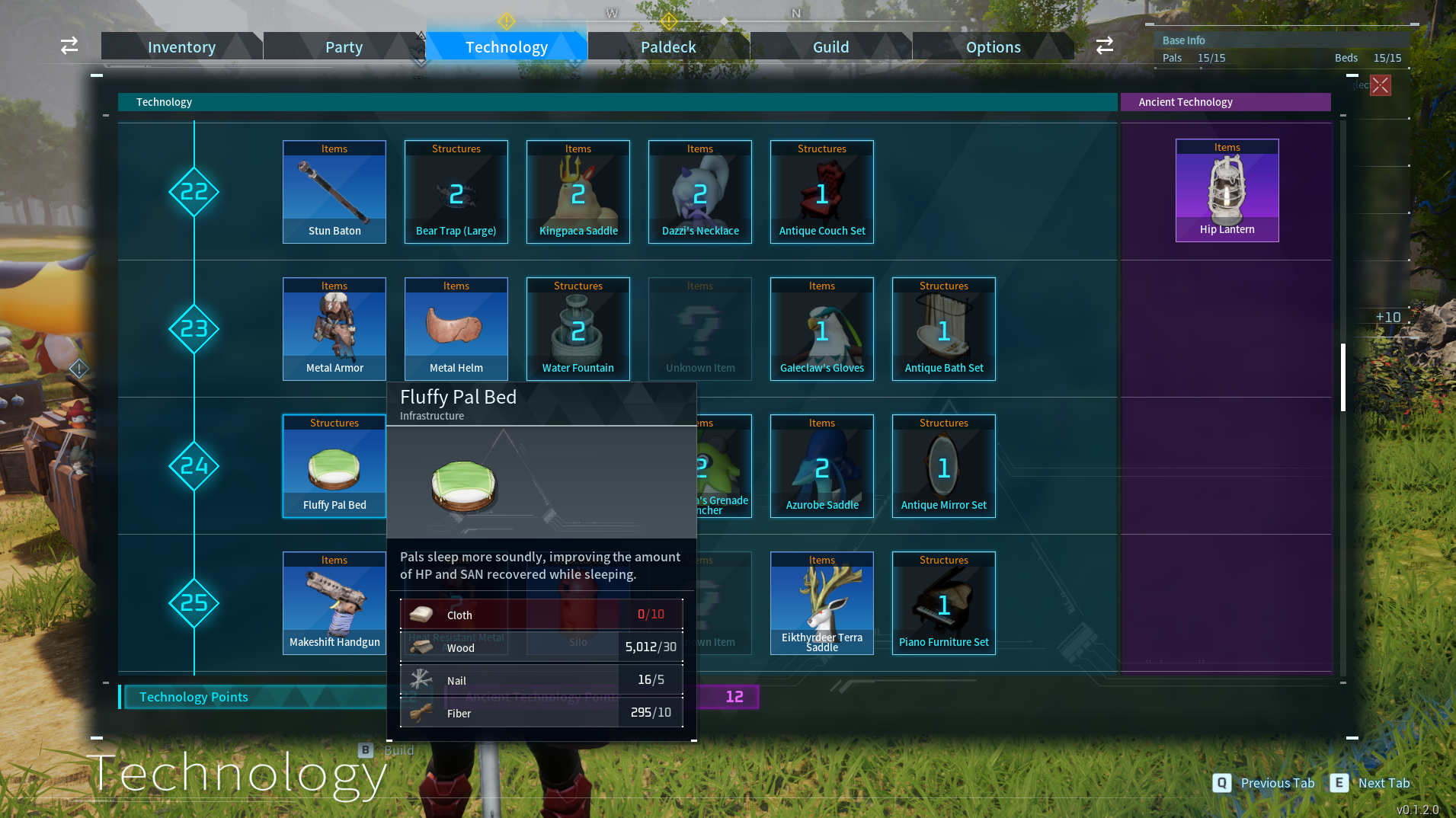 The Fluffy Pal Bed is unlocked in the Technology tree at level 24. You’ll unlock it later than you might like, especially if you’re trying to increase your base’s level to get more Pals to work.
