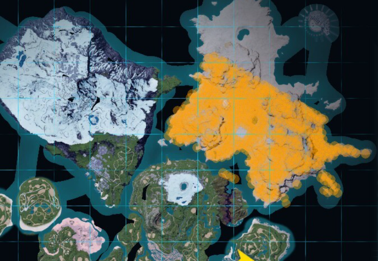 Dazzi is found in this wide desert area to the east in Palworld, marked in yellow on the map image above, so make sure you bring heat-resistant clothing for daytime or cold-resistant clothing for nighttime.