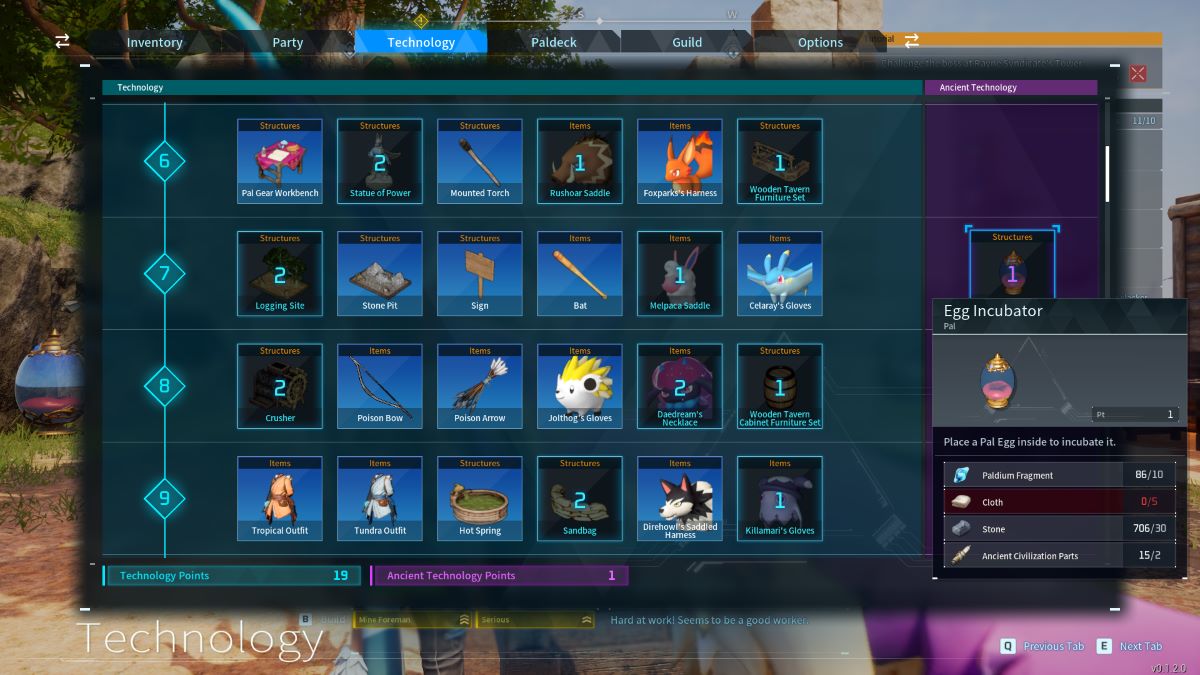 Incubating Eggs is relatively simple in Palworld, as the primary thing you need is just good old fashioned patience. However, unlocking the option to craft an Egg Incubator in the first place might be a little confusing for new players, since the unlock requires Ancient Technology Points if you’re playing on Steam. At the time of writing, the technology can be unlocked from the standard tree on Xbox.