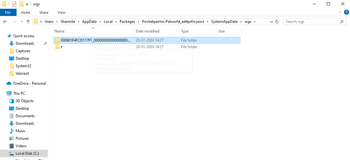 - Here, you should see a folder called PocketpairInc.Palworld_ad4psfrxyesvt. From this folder, navigate to the SystemAppData folder and then to the wgs folder.