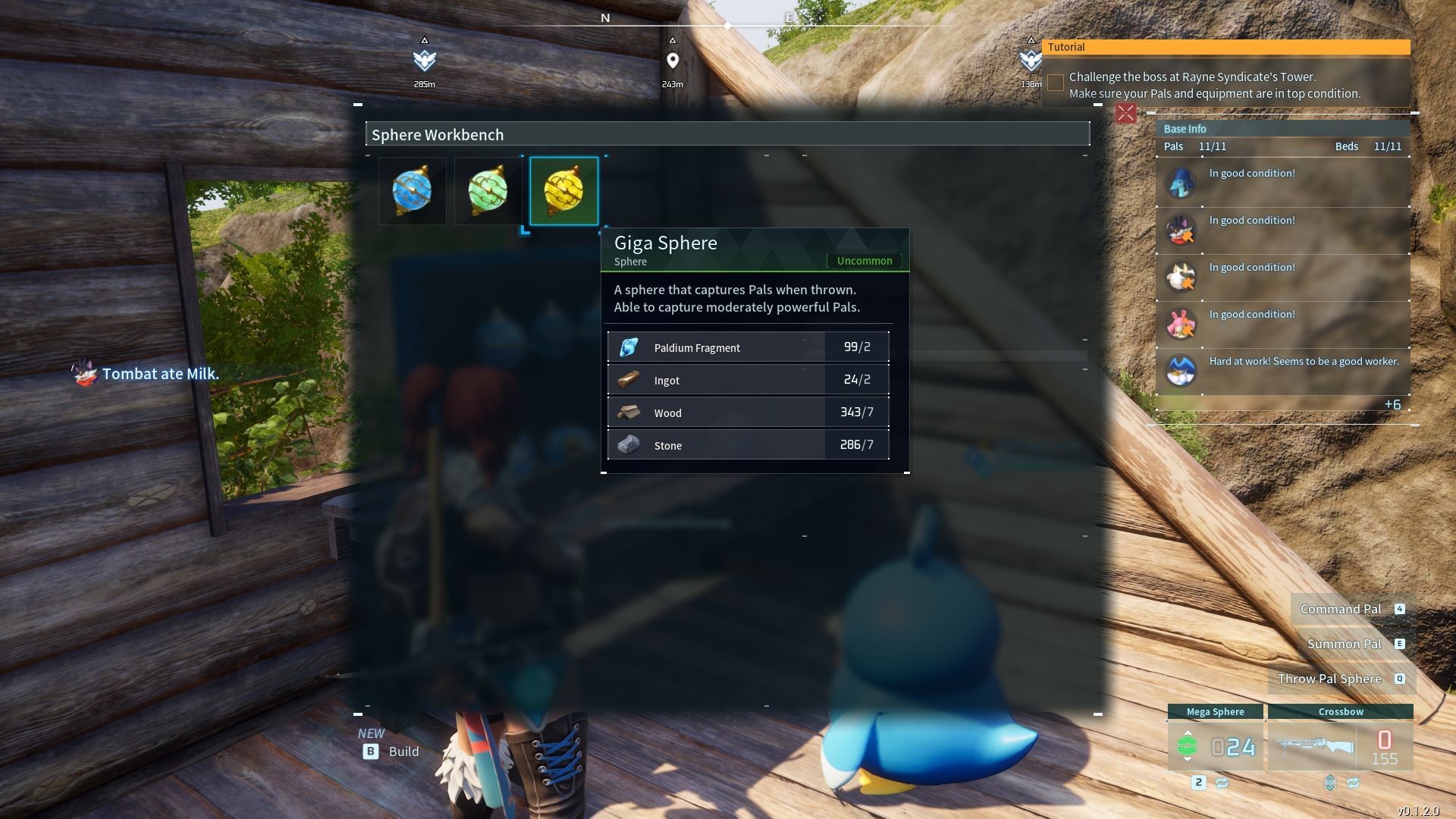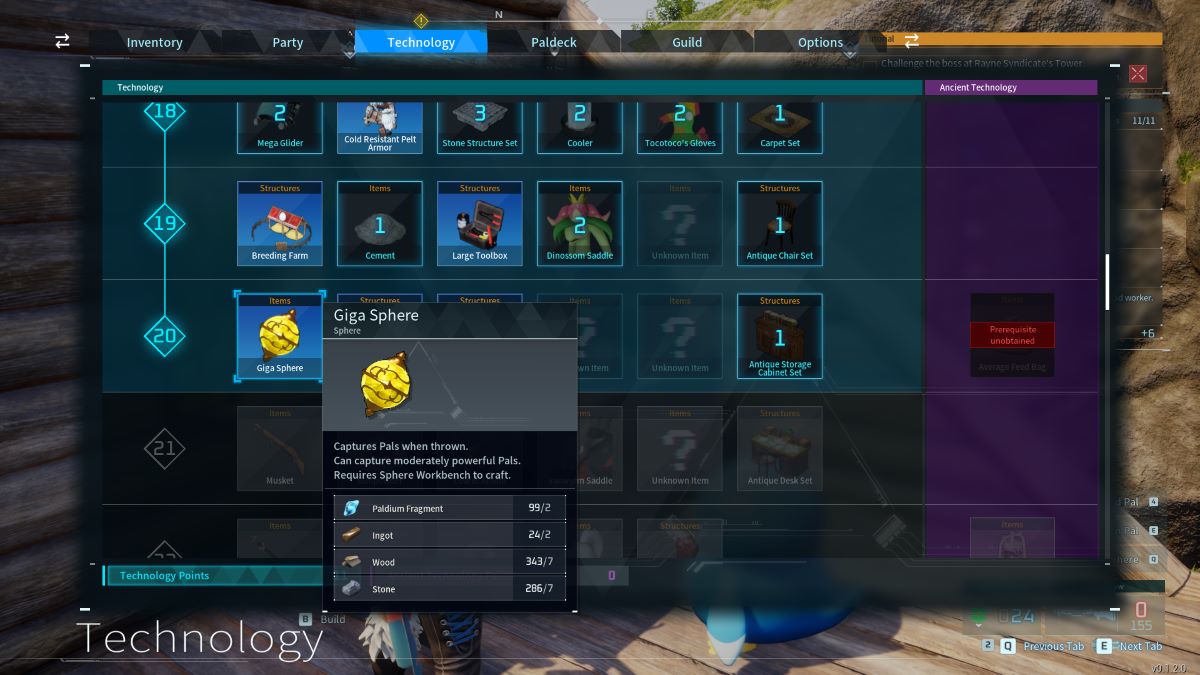 There are several different tiers of Pal Spheres, and each boasts greater capturing power than its predecessor. There is the Mega Sphere, which can be found on the ground even in the starting island that hosts the Plateau of Beginnings, and then there is the Giga Sphere, which is where things start to get a tiny bit less intuitive. Getting Giga Spheres is an absolute must in Palworld, and thankfully, it’s easy once you understand the process.