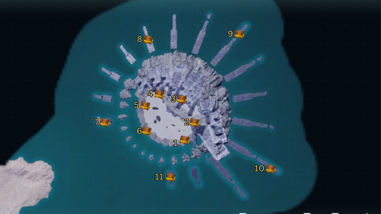 This chest farming route in Palworld is super easy to reach and great for beginners. It’s right south of the Plateau of Beginnings, where the game starts. You just need any flying or swimming Pal to cross the sea to this spot. I suggest using a flying pal like Nitewing, especially if you’re new. You’ll have to climb a bit to collect all the chests.