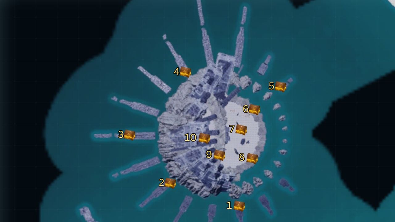 Among the Wildlife Sanctuary routes in Palworld, the West route is the least optimal, but it’s still a good choice with 10 chests in one spot. Like the others, it has an inner and outer ring. If you’re coming from the Volcano fast travel point to the south, it’s easier to start with the outer ring. Begin at spot 1 (coordinates -663, -165) and make a circle west until you hit spot 5 at -633, -80. Then, switch to the inner circle, exploring all the land to find the remaining chests until you collect the 10th chest.