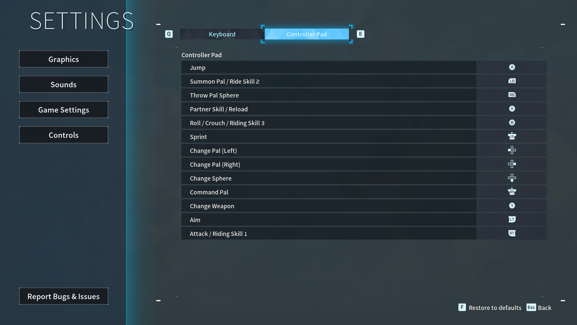 You can change certain controls in Palworld by opening your settings and going to your controls. Under this tab, you’ll find all listed keyboard and controller binds. Then, select the control you want to change and press the key you want to use instead. Before you get back to the game, save the changes you’ve made.