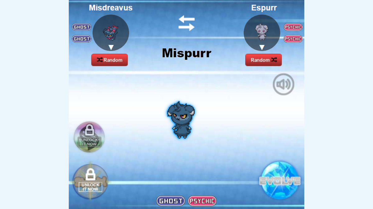 Speaking of Meowstic, its pre-evolution, Espurr shares a very similar body shape with the moody Pal known as Depresso. The biggest difference is their eye shapes, with Espurr’s eyes wide open and Depresso’s RBF (resting b*tch face). My first thought was to use baby Pokémon Toxel for that same grumpy look, but Toxel was locked in the generator so I opted for Misdreavus instead. It ended up working out since the Ghost Pokémon shares similar blue and purple colors as Depresso. The generator makes the fusion look a bit silly, but I imagine this is as close as we’re gonna get to an accurate Depresso PokéFusion.