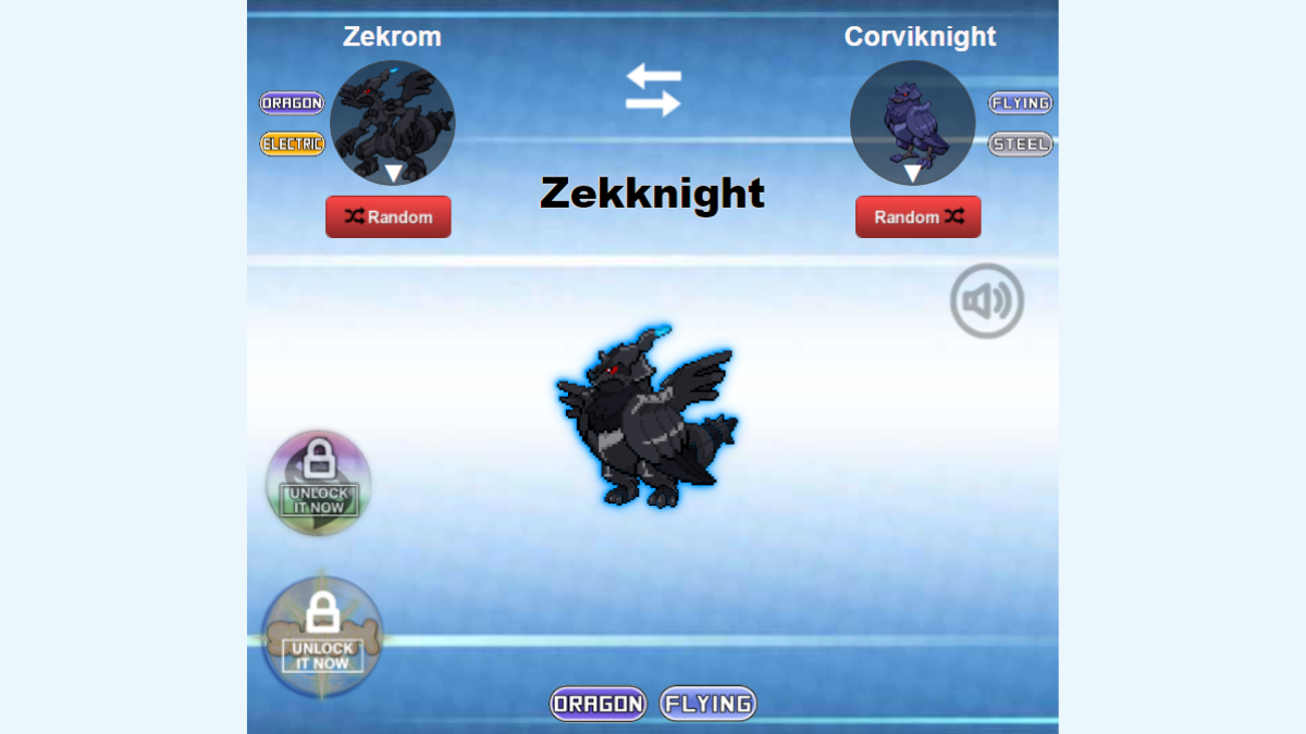 After I saw Shadowbeak’s design, I thought of two Pokémon: Corviknight and Zekrom. Shadowbeak is a black bird just like Corviknight, but the glowing blue highlights on its backside equally reminded me of Zekrom’s tail, which can light up in a similar shade of blue. “Zekknight” is the most accurate PokéFusion I’ve made. In fact, Zekknight and Shadowbeak are exactly what you’d expect Zekrom to look like if it were a bird.