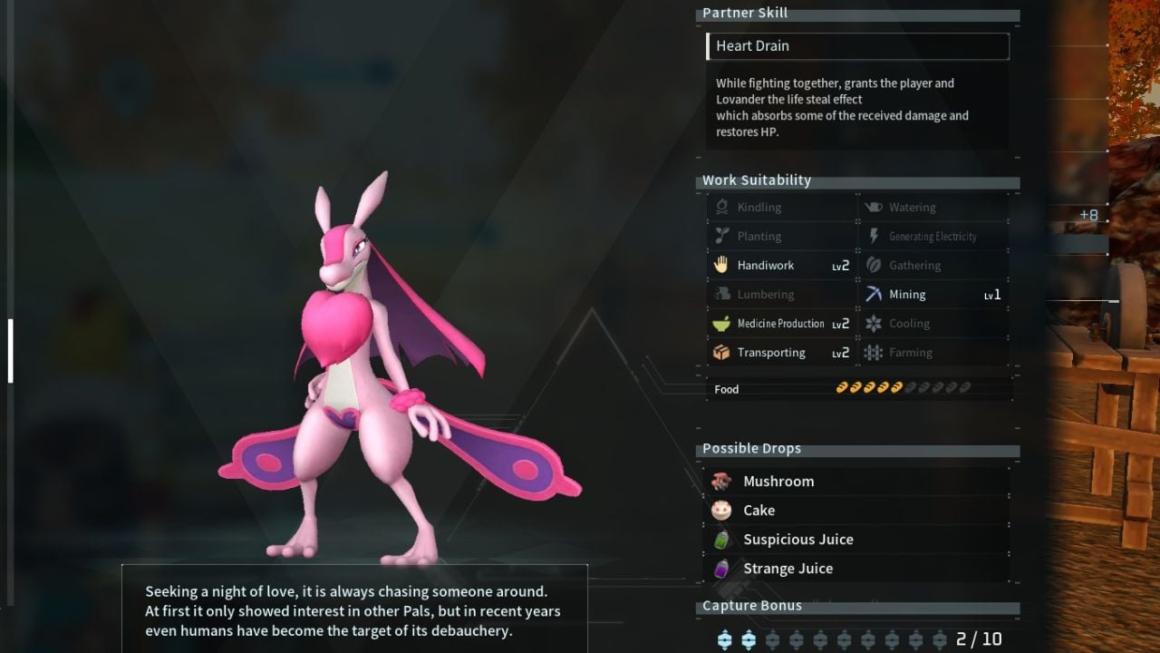 You won’t come across Lovander in other biomes or during daylight hours. Generally, you’ll find Lovander either alone or accompanied by another of its kind. But if your world settings are adjusted to increase Pal spawn rates, you may encounter a larger group.