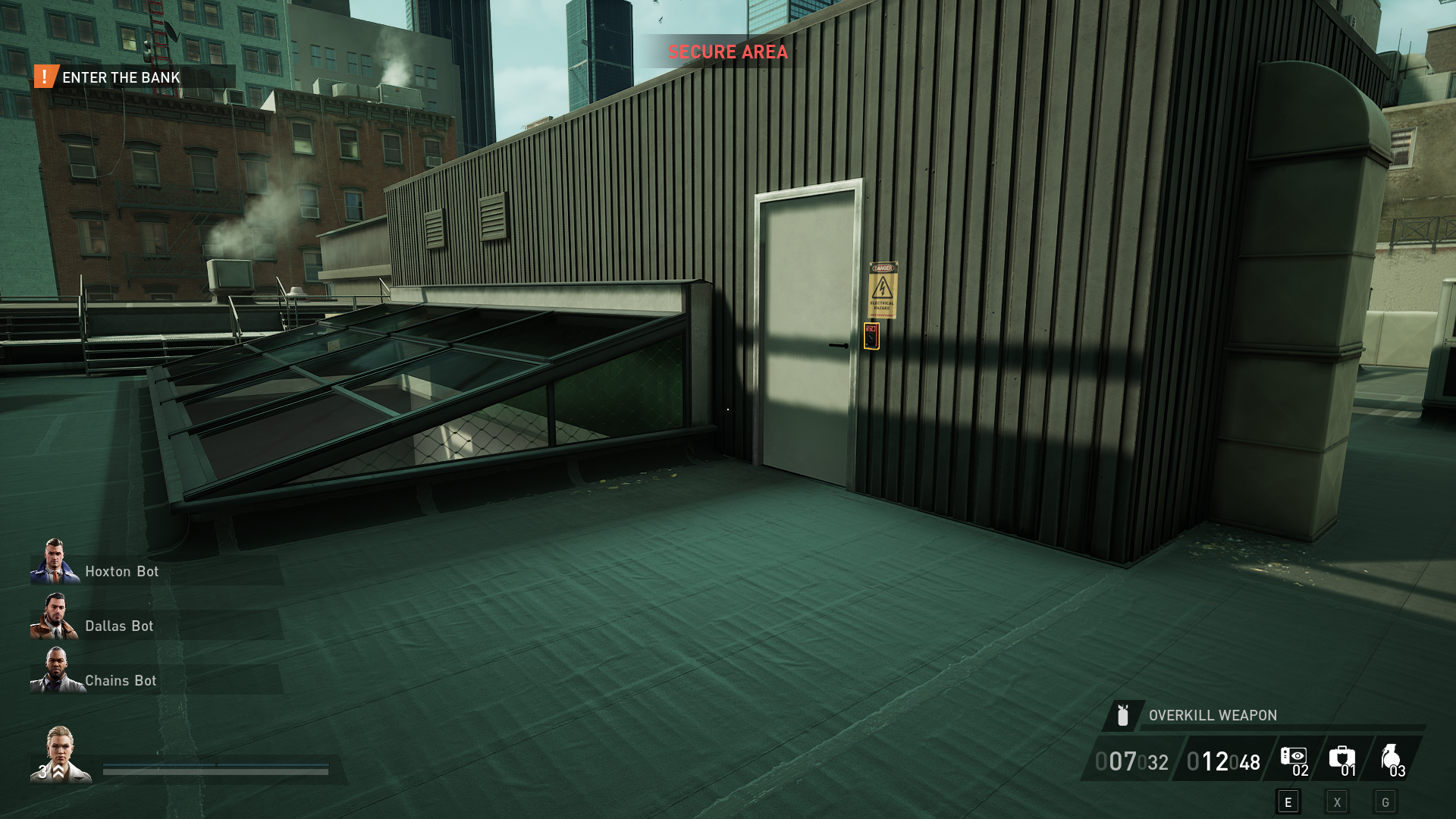 Go back to the roof from the stairwell and go around to the other side of the raised section. Here, you’ll see a locked door with a red keycard scanner. Scan the red keycard, and inside, you’ll find the terminal needed to hack and disable the vault’s security system.