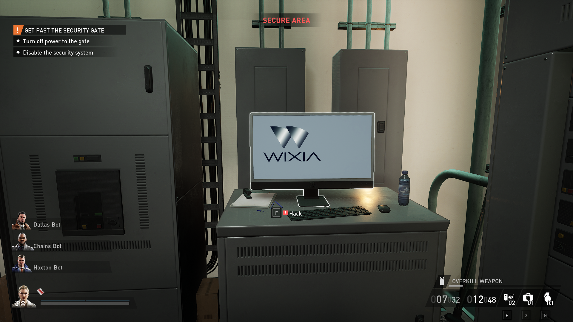 Scan the blue keycard, and inside is a single guard monitoring security footage with his back turned. Taking down this guard will cause the security cameras to all be effectively offline and can even be monitored by a heister now if the need arises.