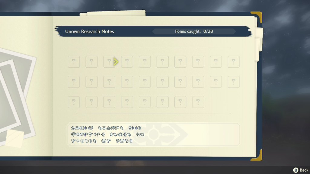 In order to complete Legends: Arceus, you will need to find and add each letter-styled Pokemon to your collection. The Unown Research Notes, which are given to you after the story mission involving Ursaluna, will guide you to the areas where each Unown is hidden, allowing you to truly catch them all.