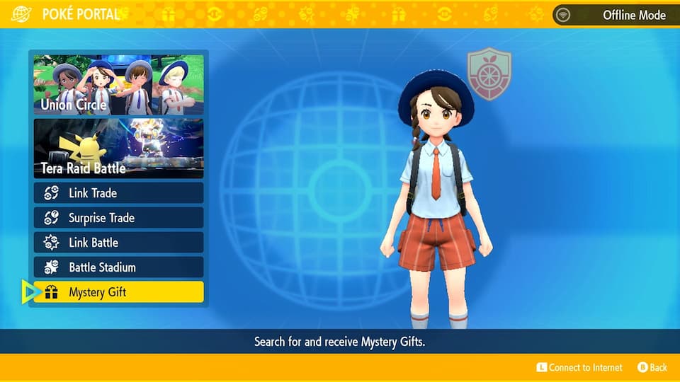 Just like when you connected your games, launch Pokémon Scarlet or Violet and head into the Poké Portal again. Select Mystery Gift and “Connect to Pokémon Go.”