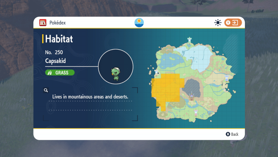 The Pokédex lists Capsakid as living near “mountainous areas and deserts,” of which are primarily located in the western part of Paldea.