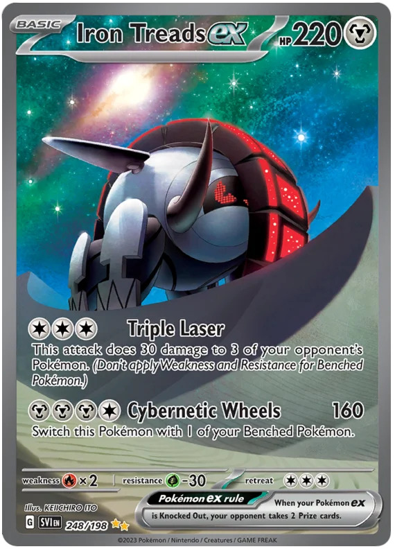 Ex cards are finally back after a hiatus. These cards are some of the rarest additions to Scarlet and Violet and boast the familiar art style you’ll remember from previous sets. Of course, they also include extremely powerful attacks.