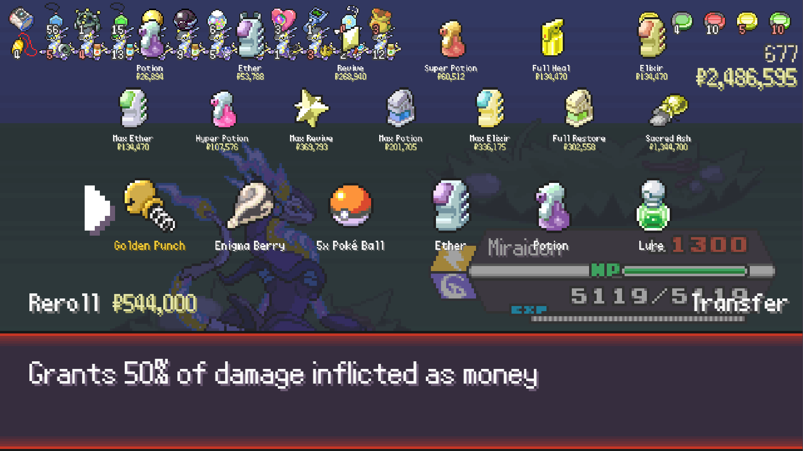 So, let’s say your Pokémon deals 400 damage. This means you get $200 back, on top of your usual earnings for the fight. In a Roguelike like Pokérogue, where money is essential to buy items and keep your team alive, getting this item early could be the difference between a good or bad run.