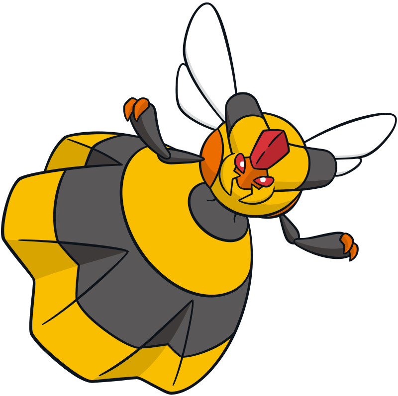 Vespiquen evolves from Combee. A female Combee evolves beginning at level 21, while its male version is currently unknown to evolve into any Pokémon. Some of Vespiquen’s Bug-type moves include Bug Bite, Fell Stinger, and Attack Order. It debuted in An Angry Combeenation! as the leader of a Combee colony, proving that it is the queen bee in Pokémon.