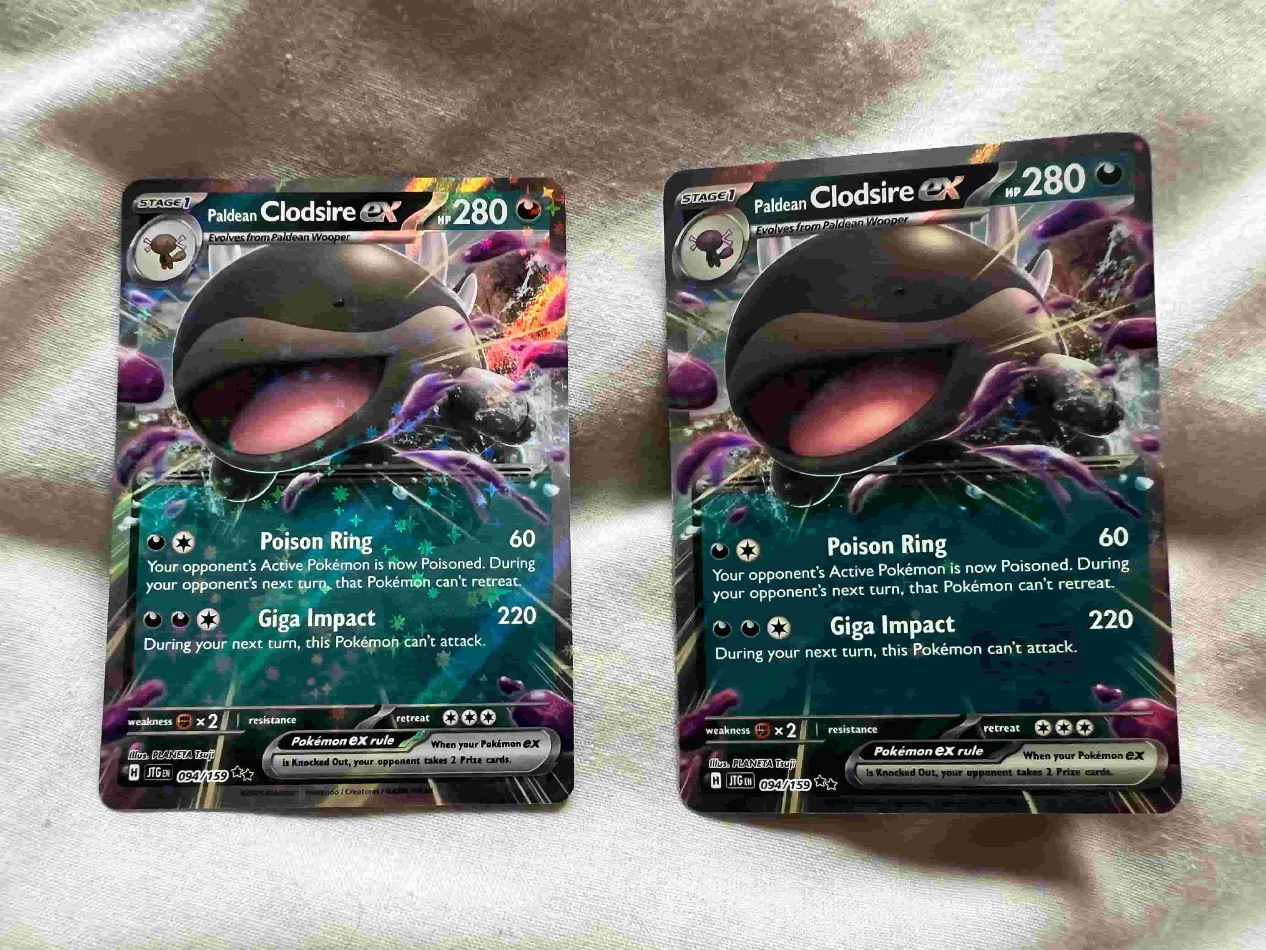 Getting double exs and non-Trainer Pokémon cards isn’t exactly what you want to see from such a small amount of packs, but I ended up getting two Clodsire EX within quick succession, which made things feel quite bleak. ETBs aren’t known for having a lot of guaranteed cards, so early on, I was concerned this would be it. Thankfully, I did have a lovely Zorua promo card to soften the blow—definitely one for the binder.