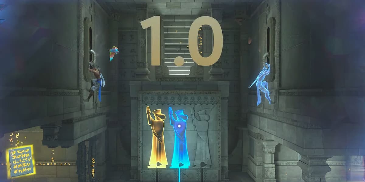 The Sacred Archives puzzle is an almost-mandatory puzzle to solve, since it will unlock one of Sargon’s most reality-warping powers, Clairvoyance. The puzzle is divided into four sections, each more complex than the last. To resolve all four, you’ll need a perfect blend of cleverness, agility, and impeccable timing. Let’s dig in.