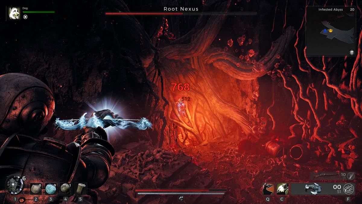 The more you attack the thing, the more enemies spawn, and they will easily overwhelm you even on the lowest difficulty. I suggest you damage the Root Nexus by about 33 percent and then kill any enemy that’s spawned in the vicinity. When you don’t see any more enemies, damage the Nexus by another 33 percent and then kill the enemies again. Once the second wave of enemies is down, finish the Root Nexus off and continue down the path. The poison fog will also clear around this zone, but you’ll encounter more of it as you keep going.