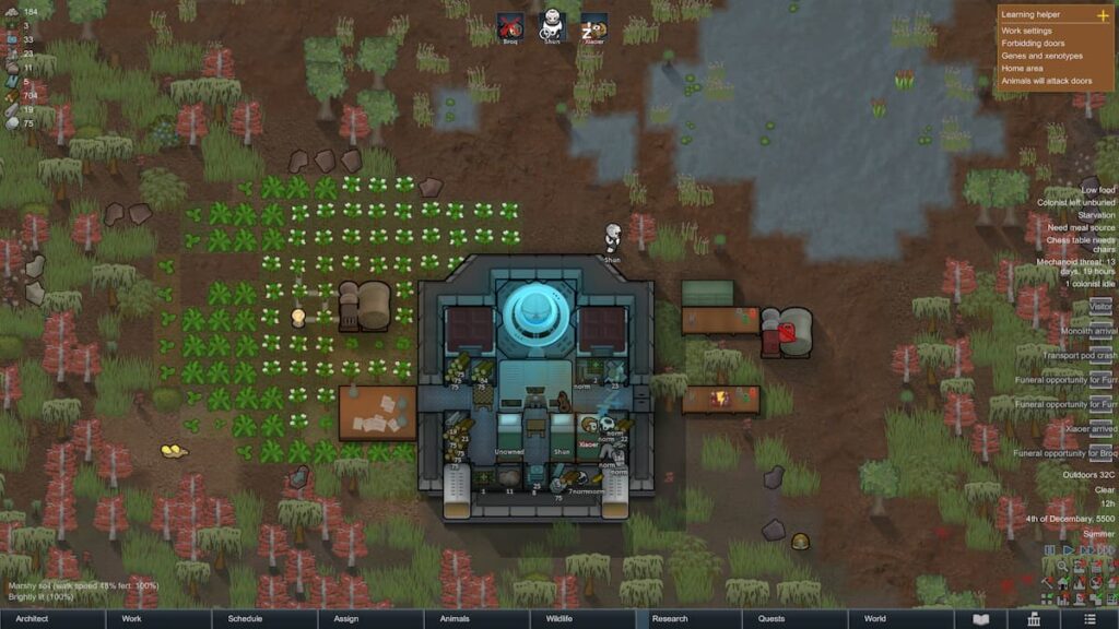 You won’t be able to get the best gear immediately in RimWorld, but you can start with some basic plants and make clothes to protect your crewmates from getting exposed to cold temperatures. If your crewmates don’t have clothes, it’ll take a huge hit on their mood and they’ll become less productive in their work—unless they have the Nudist trait.