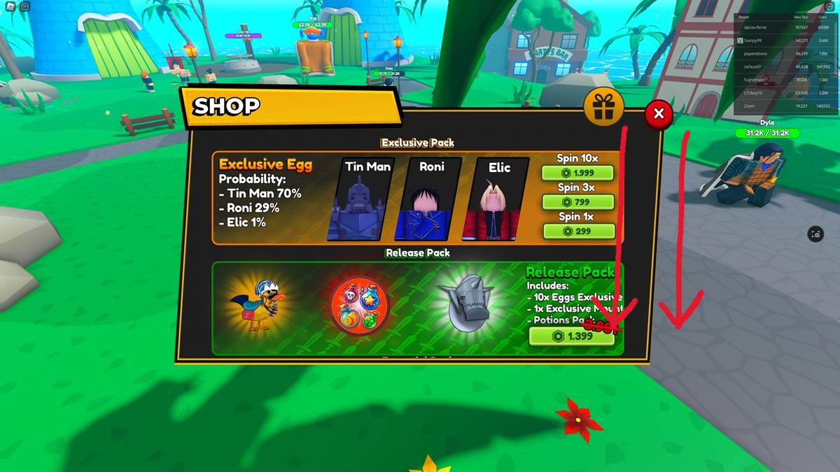 | 60KFAVORITES | Damage Potion, Lucky Potion, and XP Potion |
