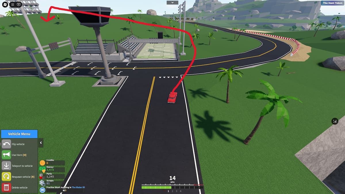- Follow the road leading up until you get to the top of the hill, where a circular race track is