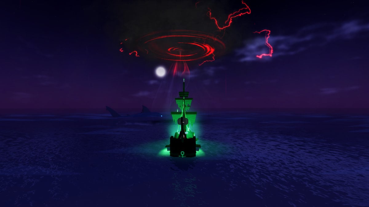 If you don’t want to spend money, you can also ask your friends or any higher-level players to use the Sundial totems to change the day and hopefully spawn the dangerous shark foe. After the Megalodon spawns, the lobby usually gets notified using a notification, but it’s not guaranteed in our experience, so it’s safer to stay near the Ancient Isles and constantly watch for a dark cloud with red lighting over a dark vortex. After you spot it, make your way to the location using your ship and start fishing in there to find the Megalodon. If you do manage to catch it, an exclusive cutscene will play, and you will have the fierce predator in your inventory.
