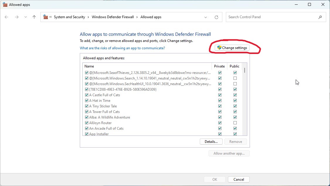 - A new window will appear with a list of all programs that are allowed to go through Windows Security.