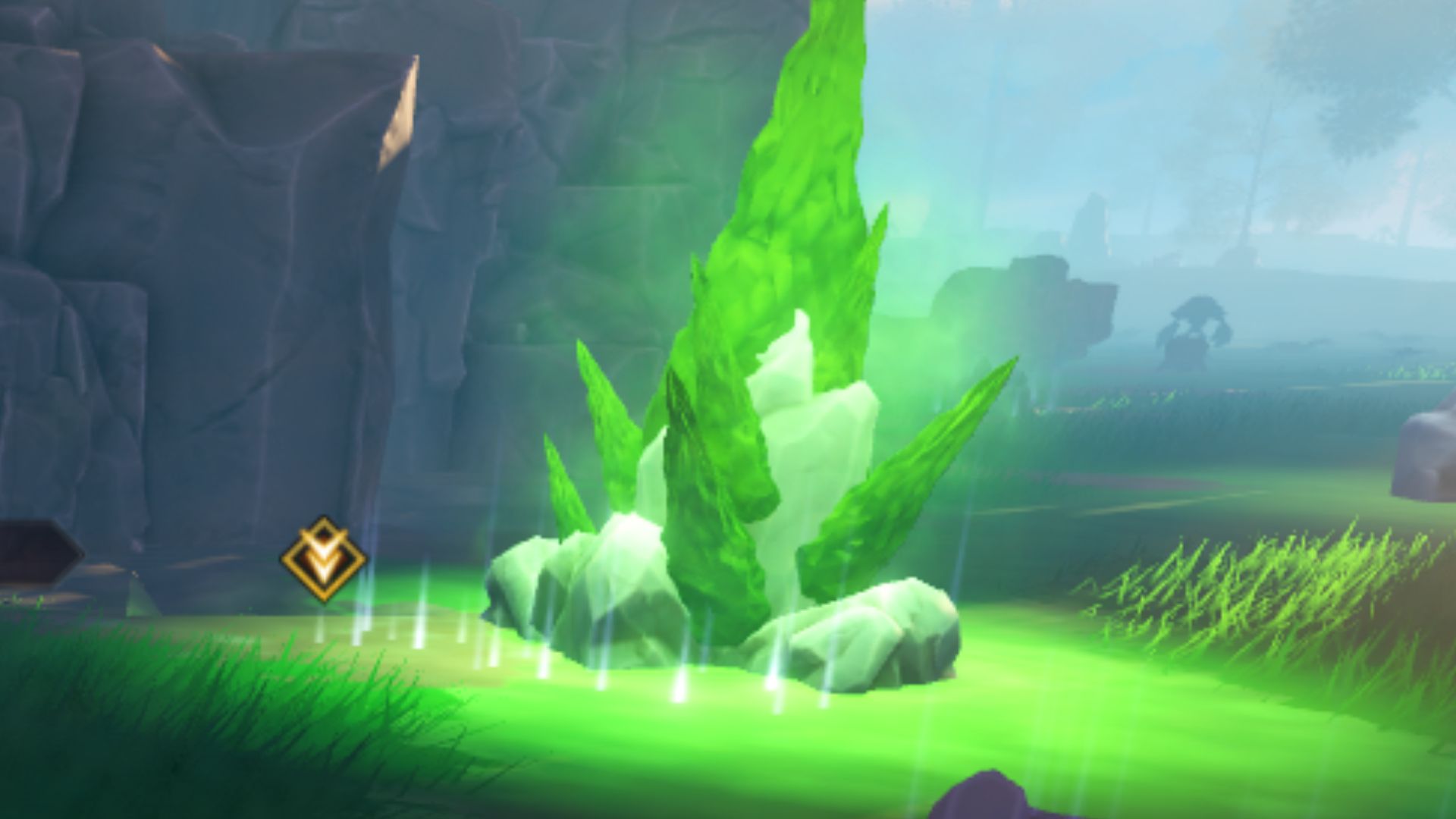 The material is very distinctive as it’s a large, green, glowing crystal and requires you to reach Mine level five to interact with the giant substance and farm its goods. I’m not suggesting this is the only Emeraldite hotspot in Devas of Creation either, but it’s the first place I reliably found the resource. You don’t have to travel too far to get to it—roughly a two-minute walk, or quicker if you have a Mount.