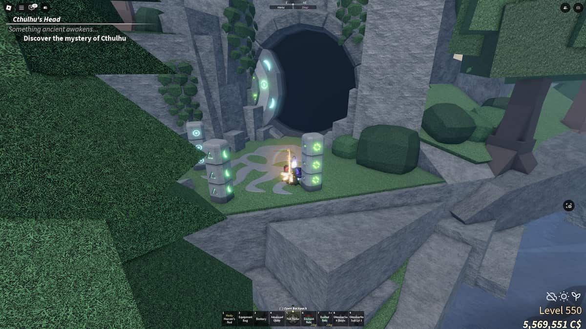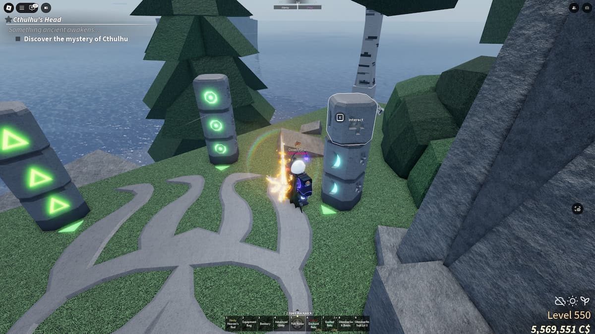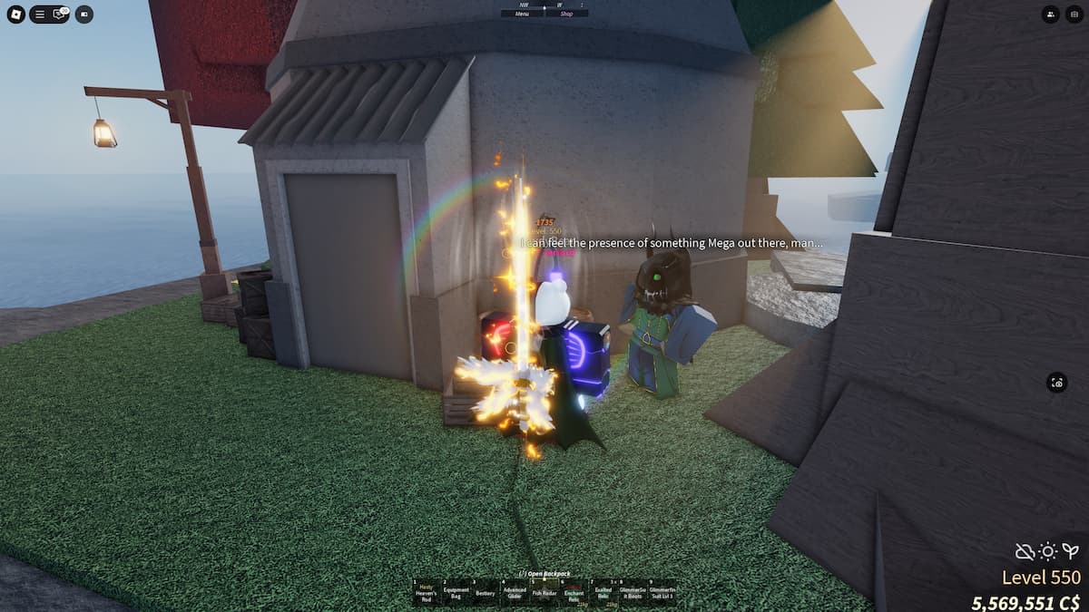 If this is your first time playing Fisch, then you’ll already start at Moosewood (if not, then head there). In Moosewood, go to the back of the island, where the lighthouse is, and talk to The Dreamer (he is wearing a scary mask). The Dreamer will task you with finding the Mega Token, so just accept the quest. The Token is located on Terrapin Island. Head there now.