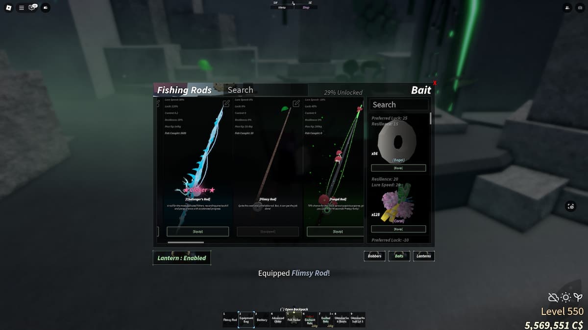 Now, head back to the room with the pool. Take out the Flimsy Rod (if this is your first time playing Fisch, it will be the only rod in your inventory). Cast your line into the pool and catch eight fish from the little pool. Veteran Fisch players, you don’t have to worry about using bait or catching duplicates because there is no RNG here. Every time you hook a fish, you’ll catch the one you don’t have. After all, this is meant for brand-new players, too.