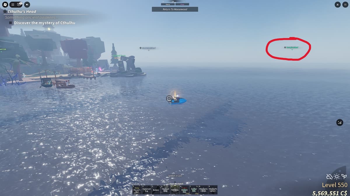 If this is your first time playing Fisch, talk to the Shipwright at the pier and spawn a Rowboat that can take you there. Terrapin Island is located on the West of Moosewood (you won’t see it if you haven’t played Fisch before, but just head in that direction, and you’ll stumble upon it).