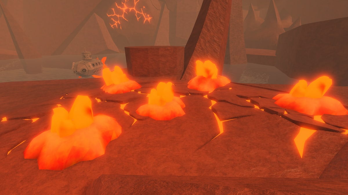 Navigate your way from the Roslit Ashfall area and go down the tunnel by descending into the hole. Avoid the structures and vines to slowly move and find the Volcanic Vents area using the Submarine. Keep descending until you find the black ground and volcanic walls. Then follow the route to reach the new region. After you surface, leave the driver’s seat and get out of the Submarine using the sail to reach the area.