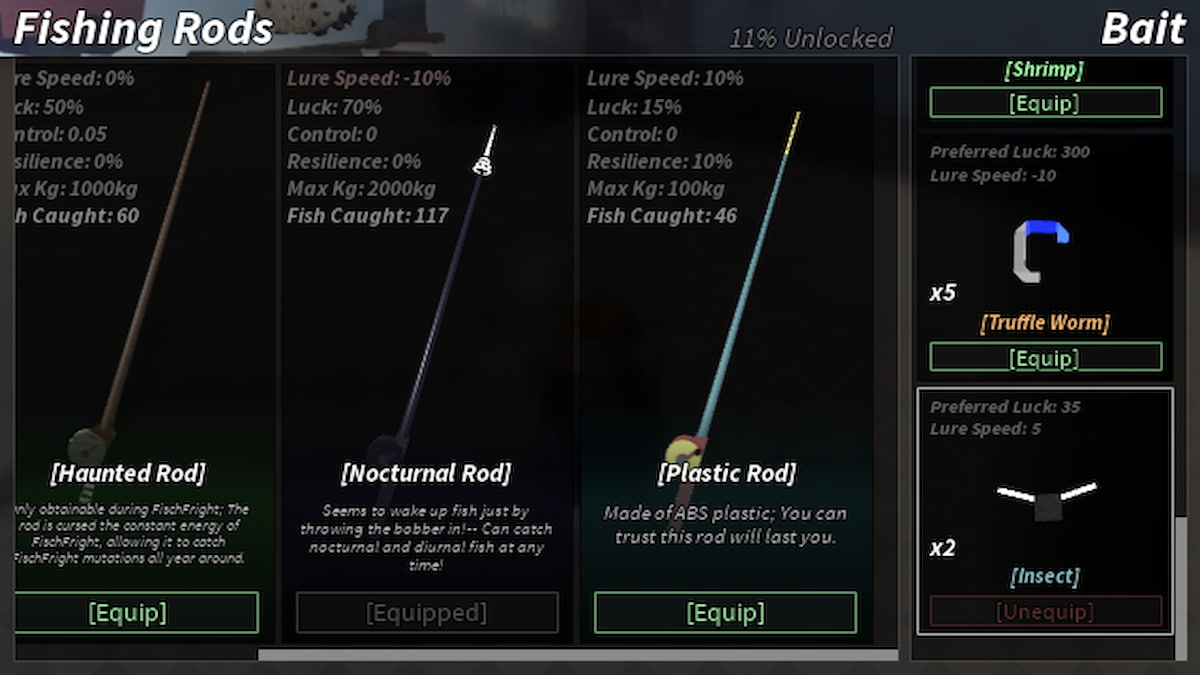 - Use insect bait: Open your equipment box and find the insect bait to use on your rod. If you don’t have the insect bait, make sure to travel to Moosewood and buy a bait crate, which has a random chance of giving you insect bait. The bait crates are very cheap, and it’s a good investment to stock up your other bait so you can more easily catch rarer fish.