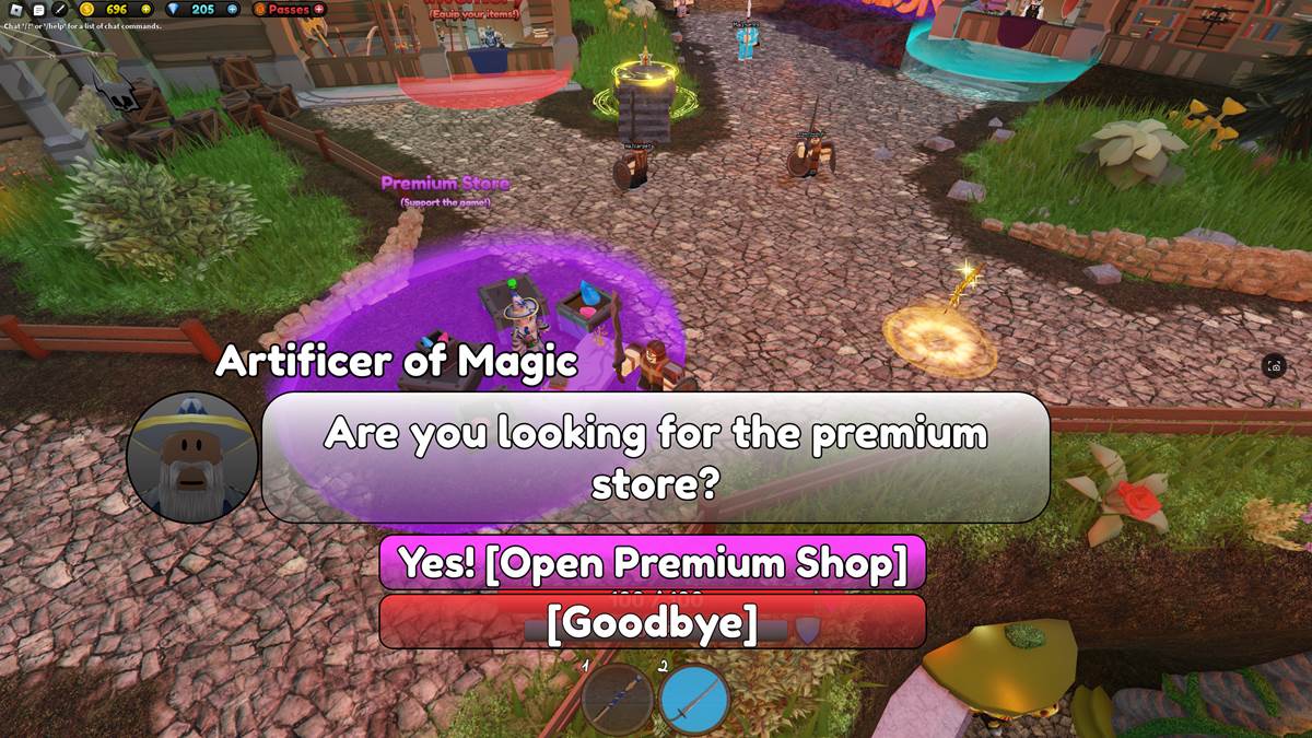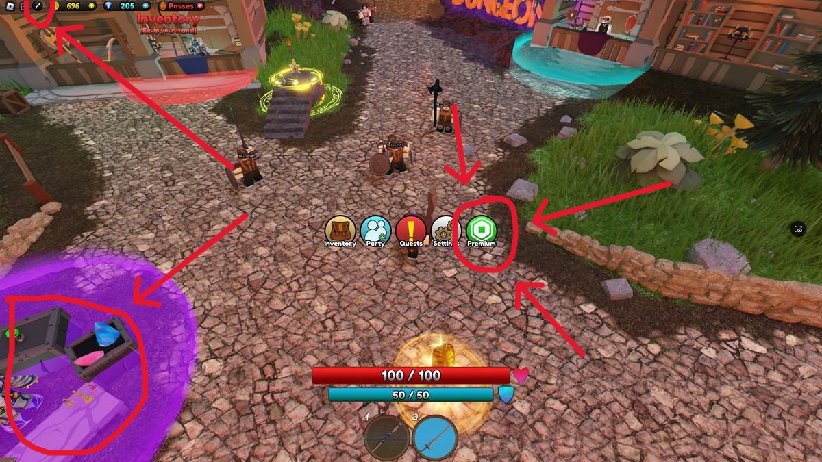 - Select the little sword icon in the top right corner OR visit the Premium Store in the game hub (it’s just south of where you spawn).