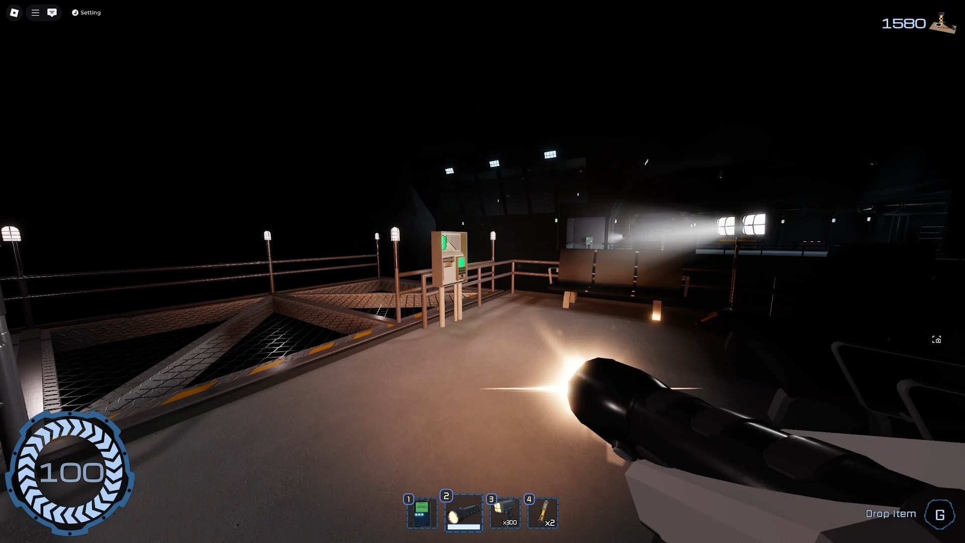 - Fourth note: This one is pretty easy. Head to the main spawn area and follow the red line (the one that leads downstairs). When you get down, look for a neon green sign that says “Lower Level Funnel”, and go inside through the dark door. When you exit the other side, you’ll be on a catwalk. Walk all the way on the catwalk to the pillar in the distance. A desk lamp on the floor is just behind the pillar, illuminating the final note.