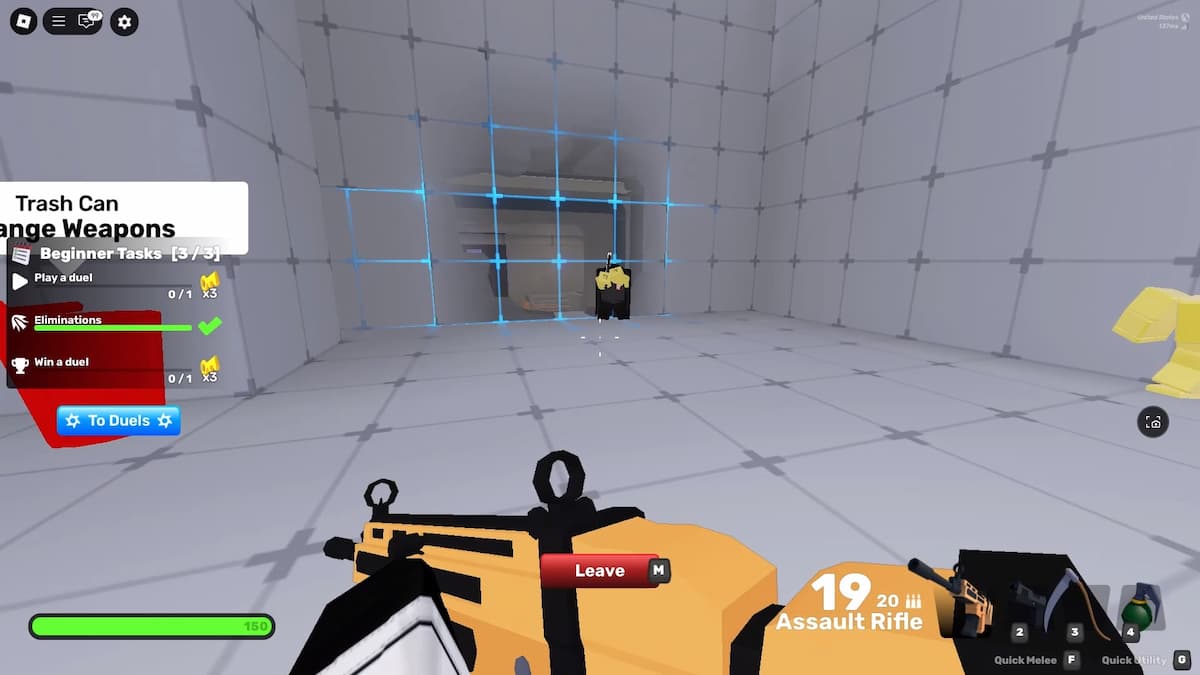 While looking for the tilted targets, try to complete some beginner tasks. These will give you keys that you can use to buy new weapons. These can come in handy during the last step.