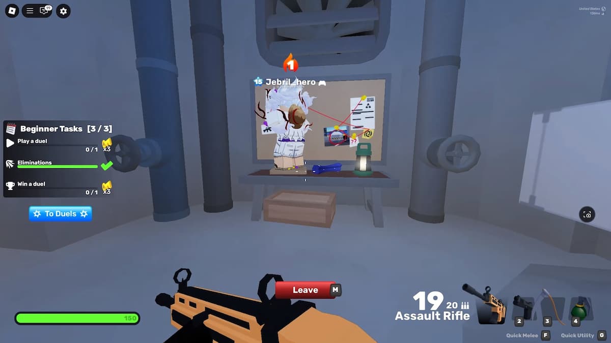 The RIVALS Badge is pretty easy to get. If this is your first time playing, simply complete the tutorial and move to the lobby. From the Lobby, look for a giant screen with the words “The Hunt” on it. Interact with the screen, and a humanoid chicken will pop out. Talk to the suspicious chicken, and it will instruct you to get the regular Hunt badge first. This is super easy.
