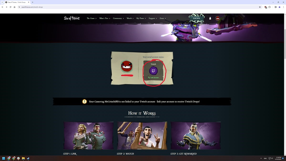 - Visit the official Sea of Thieves website and visit the Twitch Drops section