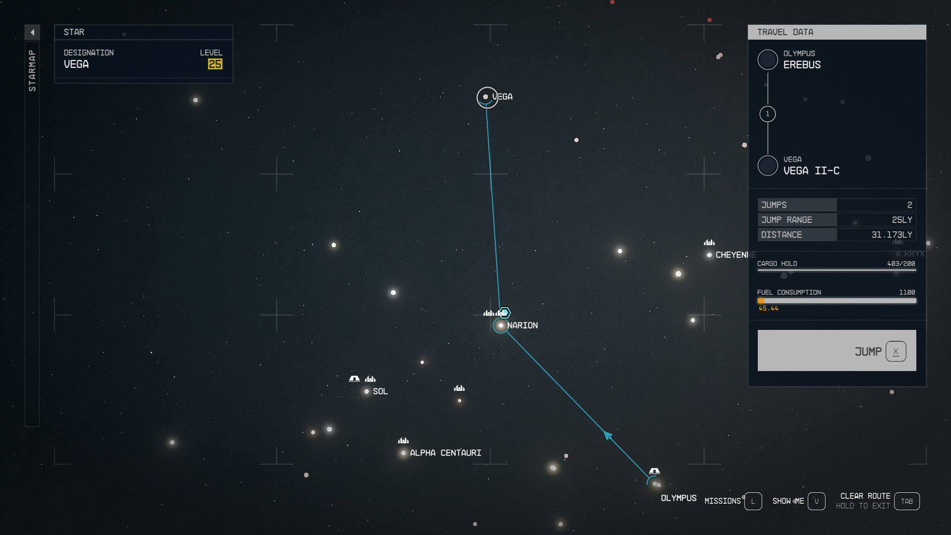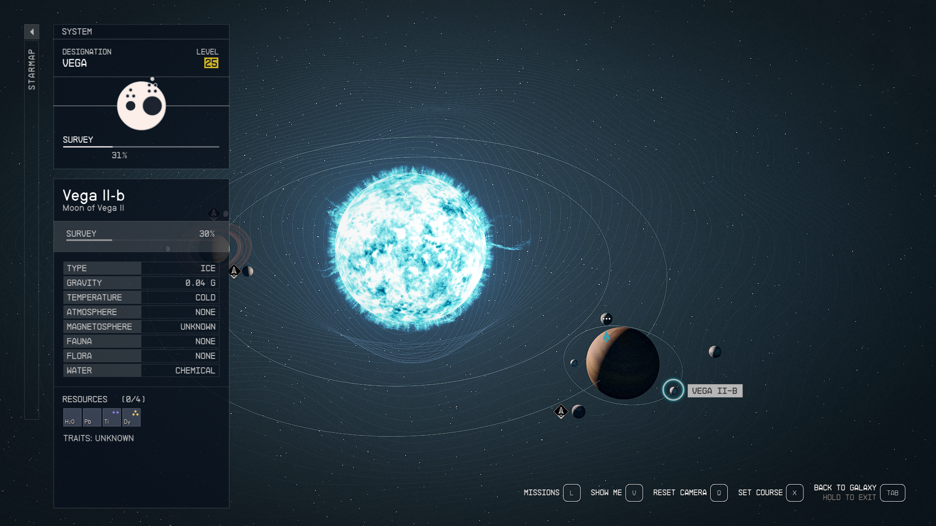 Vega is a fairly far-out system in Starfield, located just above Narion. Use the map above for reference to help find it the exact moon to land on. After landing, pull out your Hand Scanner and enjoy boost-packing around this low-gravity environment until you reach a patch of Titanium, labeled as “Ti.”