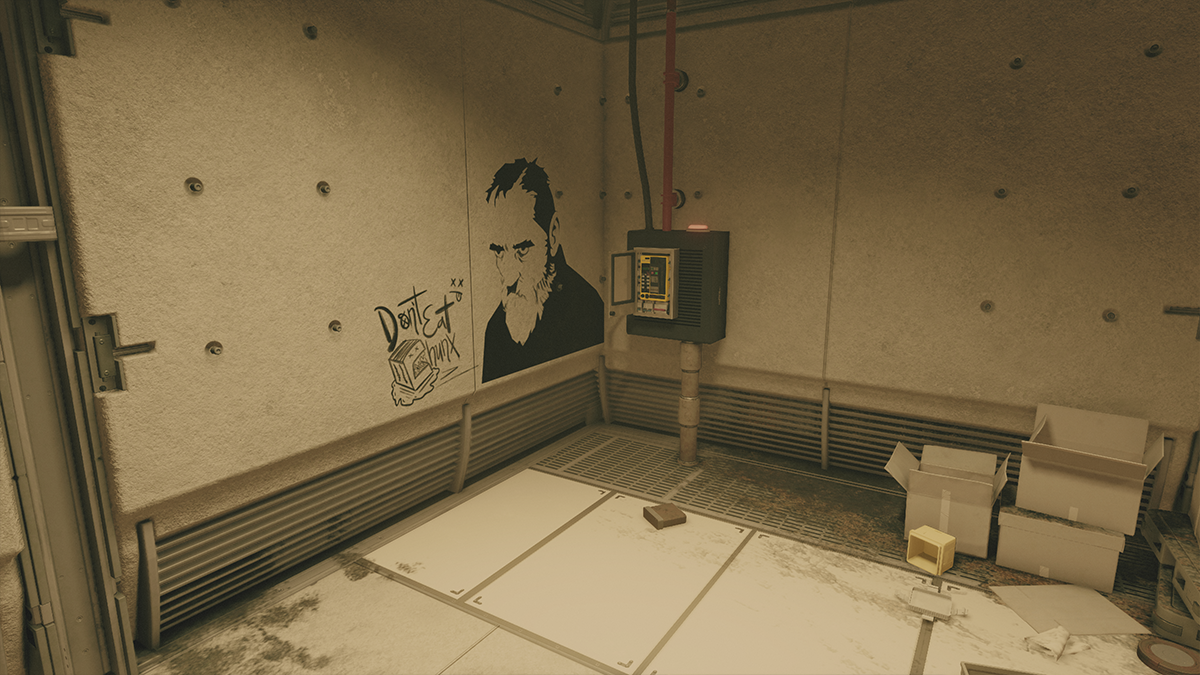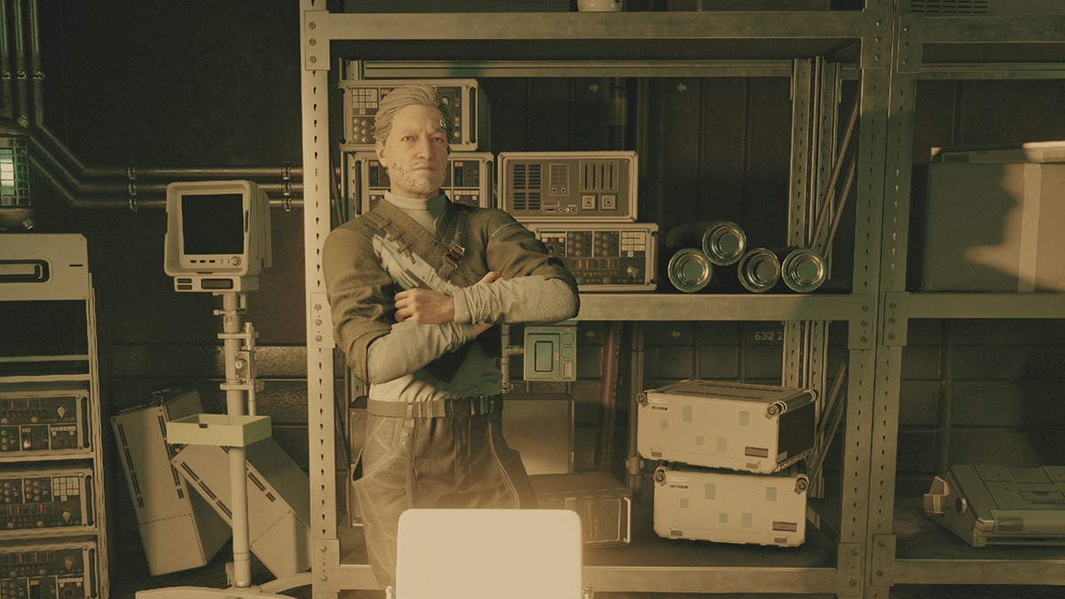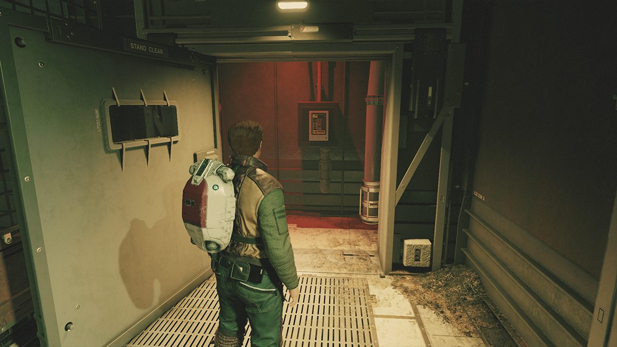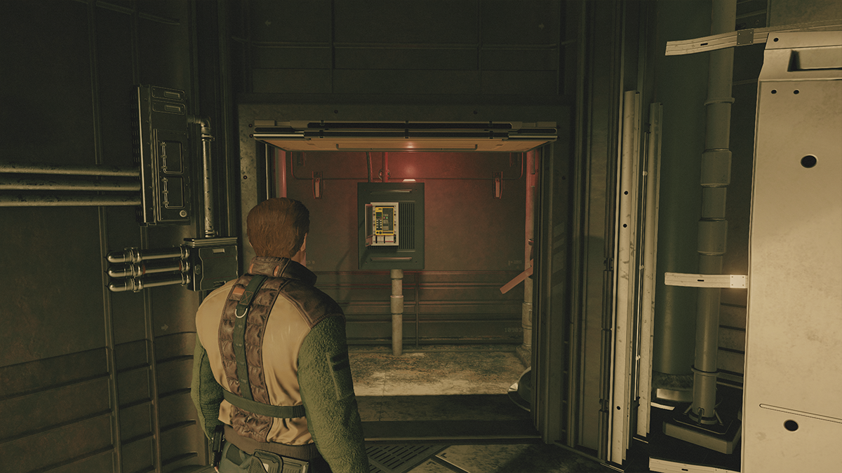 Walk up to the door and you’ll find a landing crew technician named Emin Macar. Speak to him and you’ll be introduced to the persuasion mechanic. Pass all the speech checks and he’ll let you into the storage room.