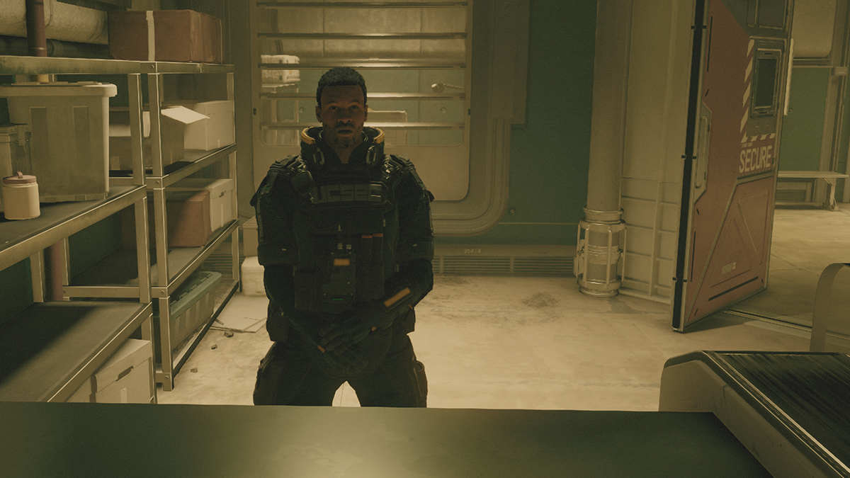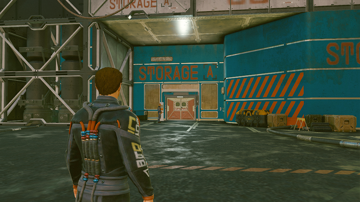 Head down to the spaceport, walk past your ship, and look for a door with the words “Storage A” painted above it.