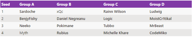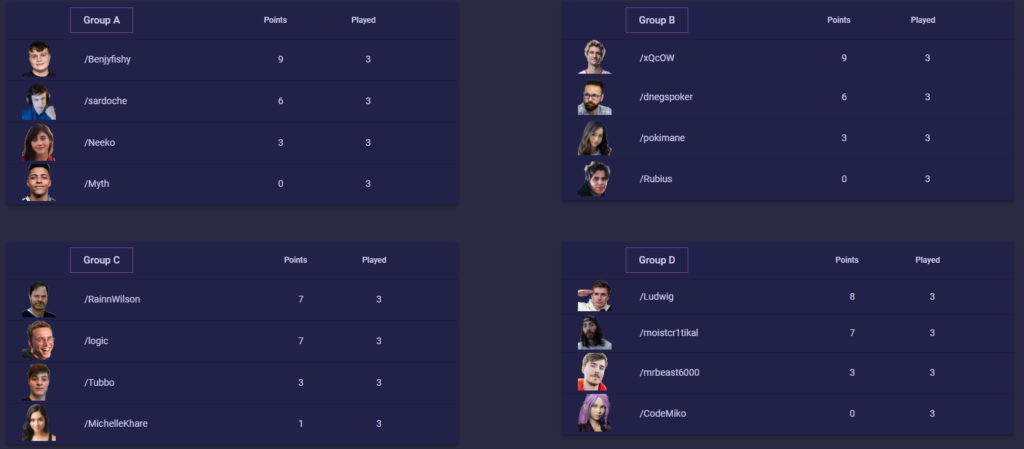 After the group stage, the top two players from each group will advance to a single-elimination championship bracket of matches using the same 10+5 game format.