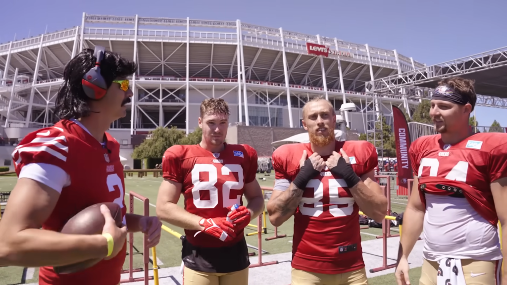 During a video that was shot with members of the team, tight end George Kittle, who is measured at six foot four, was caught standing on his tippy toes trying to come close to matching Disrespect’s height.