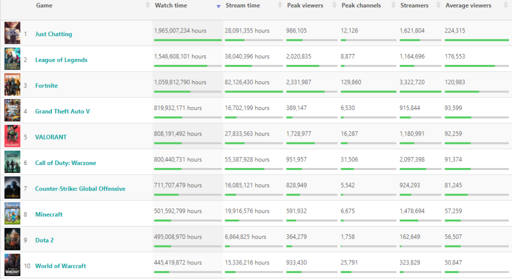 For categories like Just Chatting that saw ridiculous amounts of viewership growth, it’d be wise to temper any expectations of a repeat performance this year.
