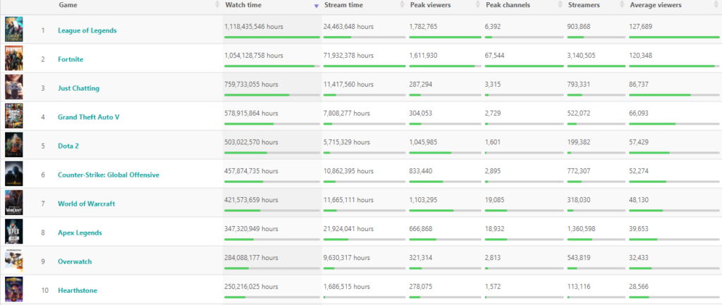 In comparison, even the Fortnite boom of 2018 led by Ninja didn’t cause the same level of growth. That year, Fortnite’s more than 1.3 billion hours watched supported a more than 40-percent increase in viewership and the platform racked up 9.3 billion hours watched.