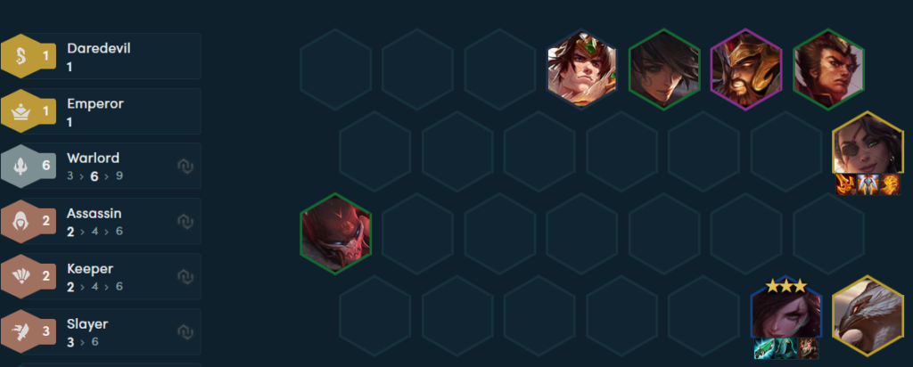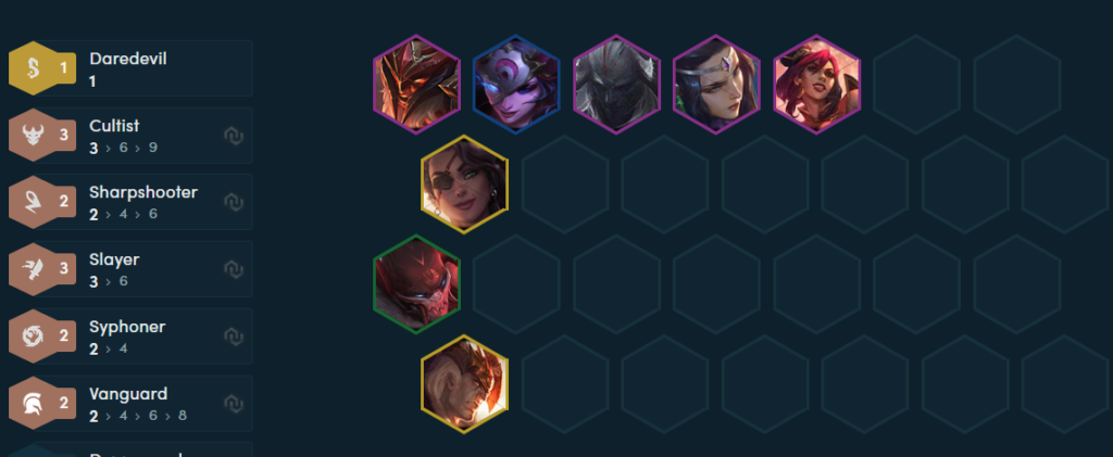To see the unit’s full potential, however, she should be included in some kind of Slayer composition. A successful build going around high-Elo at the moment is a three Slayer three Cultist board.