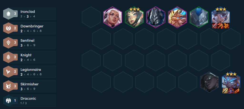 Playing the comp requires a loss-streak during the early rounds, without losing too much HP. Upon hitting level six, the comp should stabilize. Tacticians should use their extra gold from Draconic to go fast eight. With the changes to the Monstrosity a few patches ago, tank items suit the extra unit much more effectively than damage items do, with Sunfire Cape and Ionic Spark both great options.